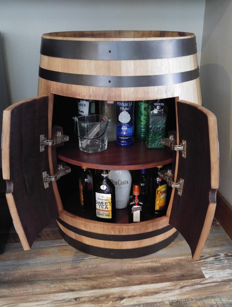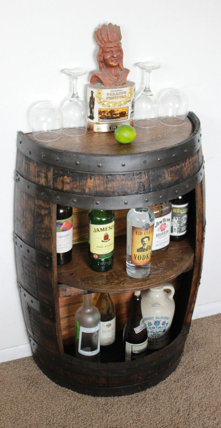 Barrel Liquor Cabinet Wood Shelf Etsy